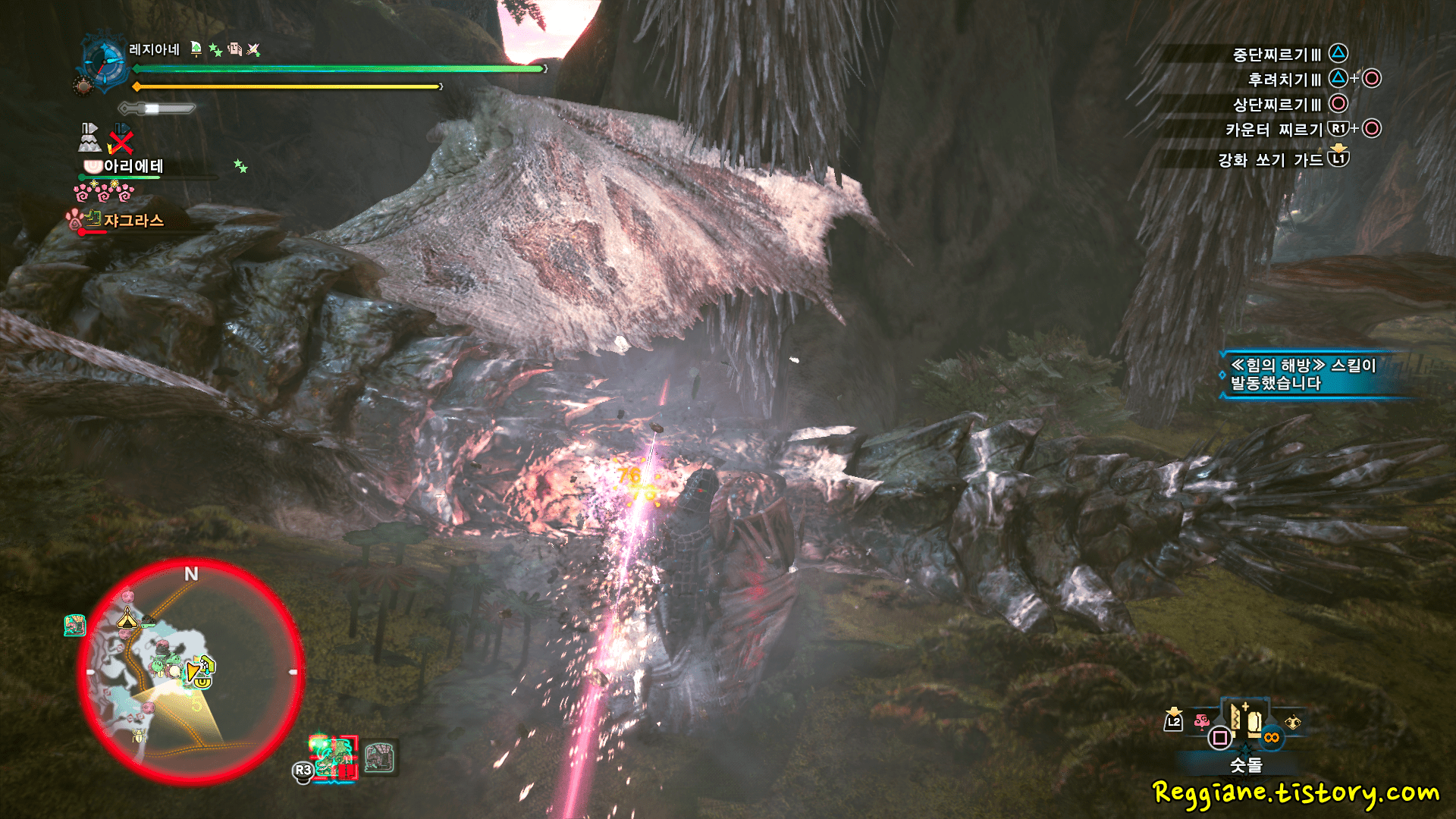 지금은 제 컨트롤이 상승하기도 했지만, 아이스본에서는 상처라는 시스템이 생겨서 일정시간 육질을 한 단계 낮출 수 있기 때문에 패턴만 익숙해지면 쉬워집니다(랜스의 전매특허인 '카운터 클러치클로'를 사용해서 상처를 계속 유지시키면 편합니다)