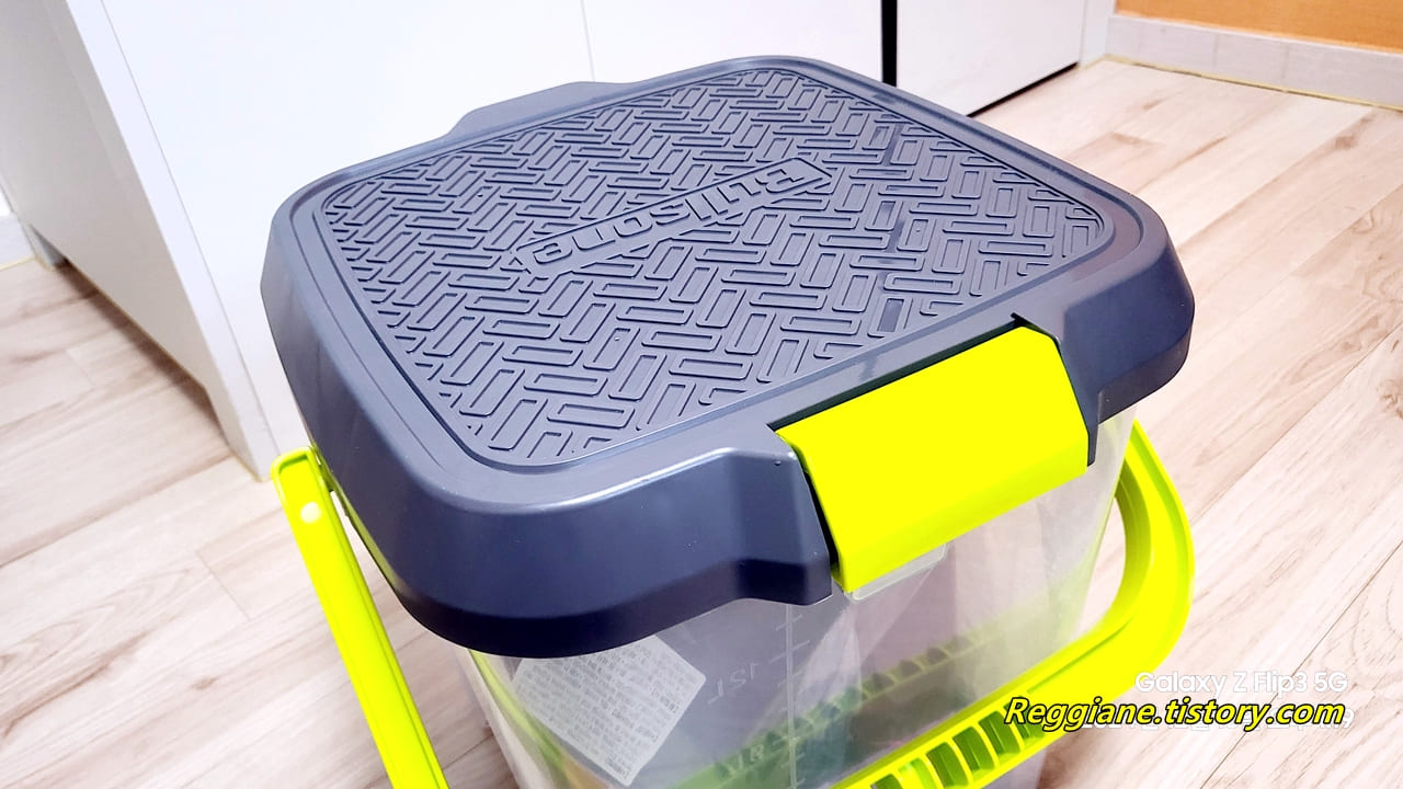 버킷의 사각 형태는 용품 수납에 있어 깔끔한 느낌을 줍니다