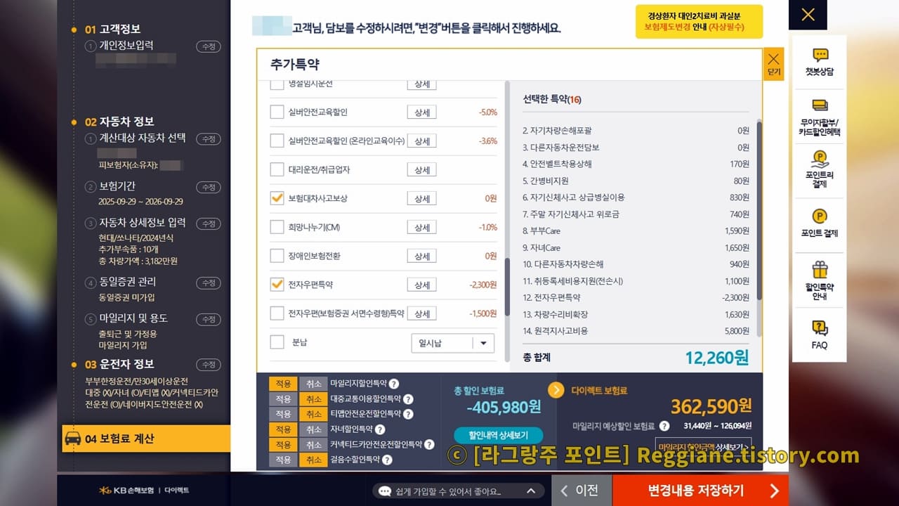 KB손해보험 다이렉트 기준으로 자동차 보험료는 362,590원입니다